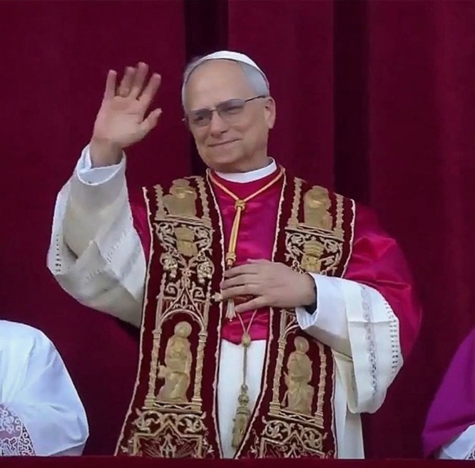 Pope Leo the XIV waves from the Balcony of St. Peter’s Square