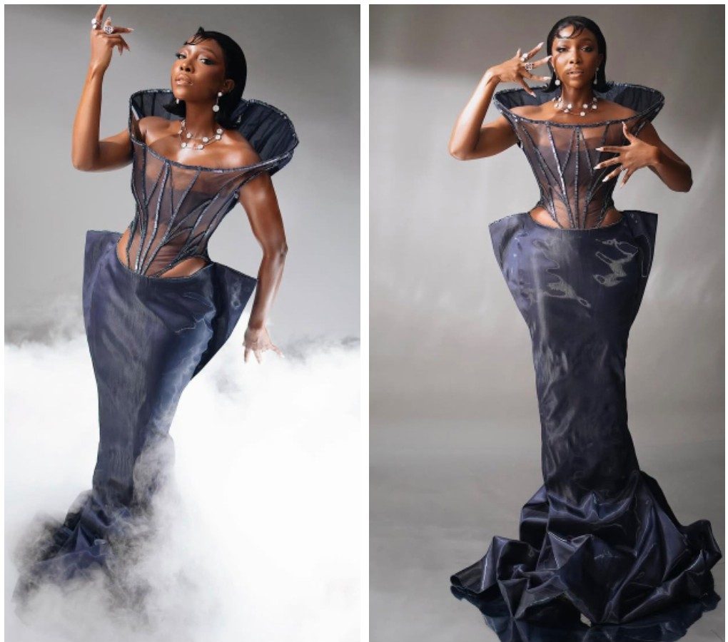 Fashion Masterpieces are nothing new for Osas Ighodaro. So like she usually does, she brought another Fashion Masterpiece to the 2025 AMVCA: Veekee James designed, a literal tree with branches, creatively using ordinary bath towels to create a leafy green and tree bark effect. Osas’ makeup is subtle, hair simple, and the dress accentuates her form perfectly.