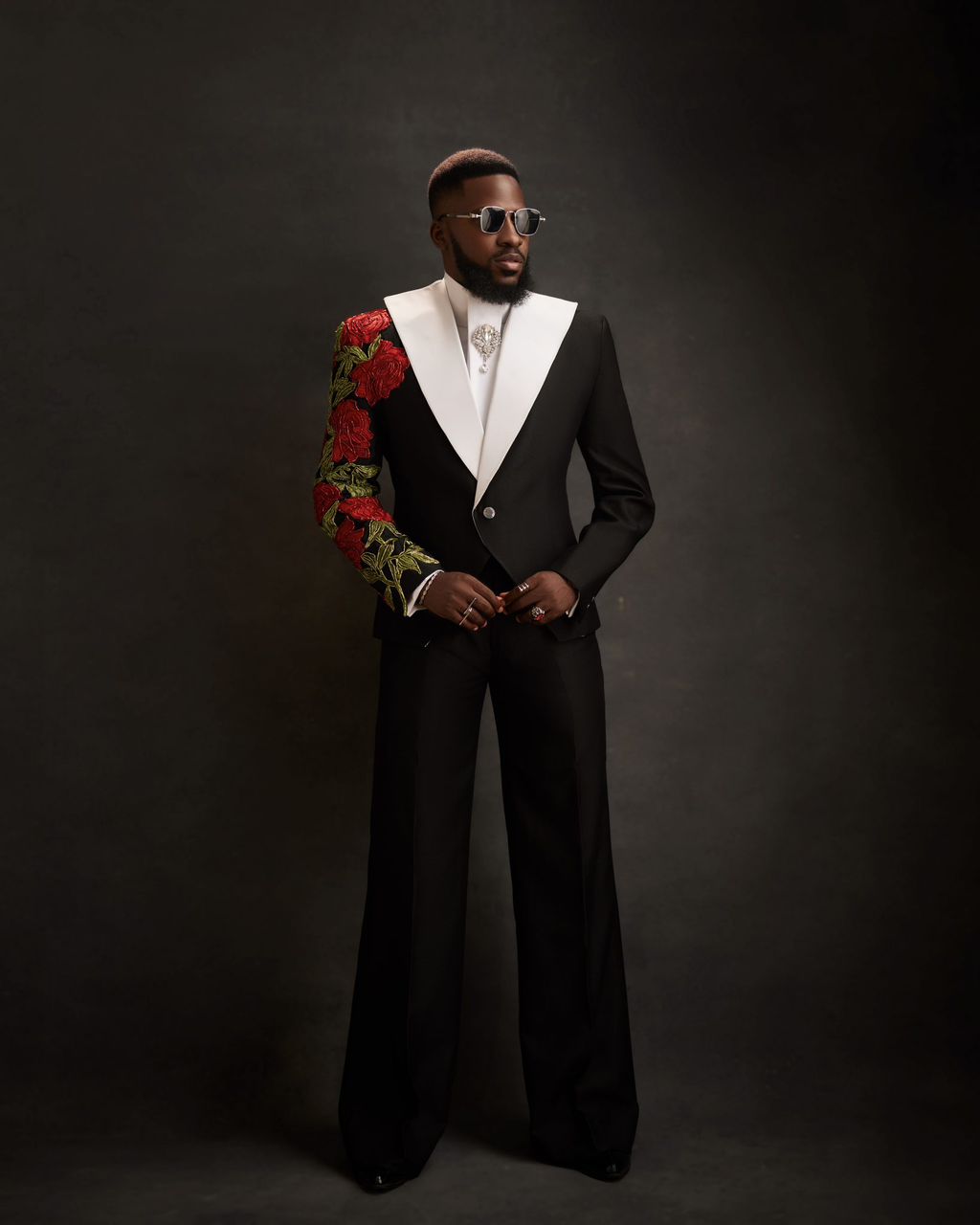 Akin Faminu chose this unique suit adorned with floral embroidery on one sleeve and a stylish scarf replacing the traditional tie. His white lapel is also cool, not too clumsy. The white lapel contrasts brilliantly with the predominantly black apparel. His pants are also very modern and tailored to perfection, mostly the preference for most Gen Zs especially in Europe. The whole ensemble is well put-together. Congratulations Akin on finding yourself at Number 1!